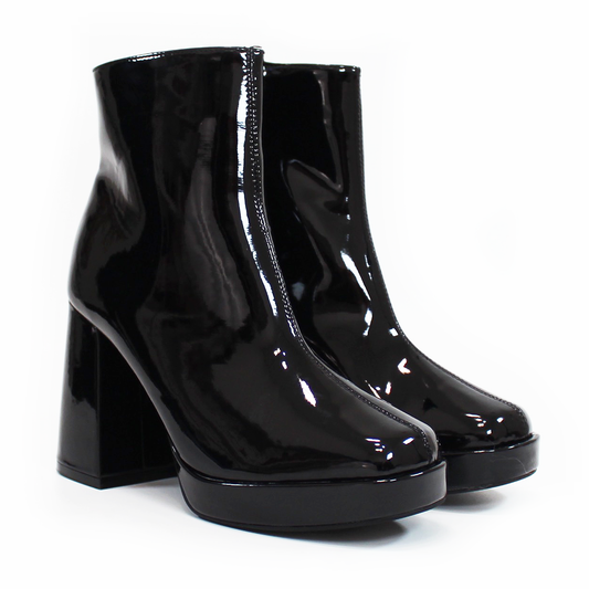 Botín Negro Charol de Plataforma con Cierre lateral de Dama LADY PAULINA