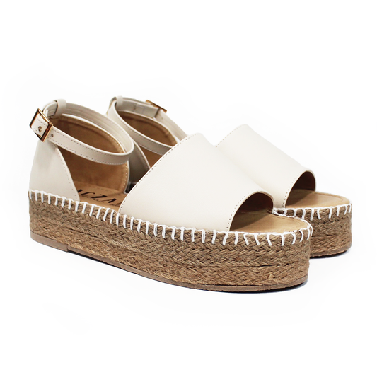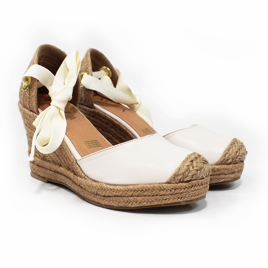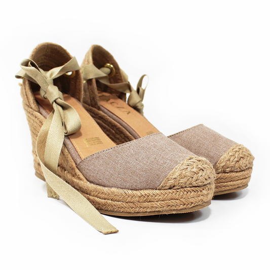 Alpargata Clásica de Plataforma Cuña con Lazos color Crudo y Punta con Yute TACZA