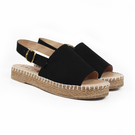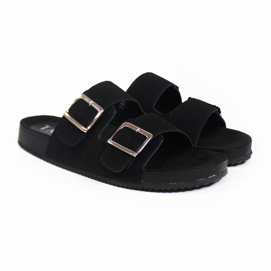 Sandalias de Piso Doble Hebilla Negro Gamuza de Dama TACZA