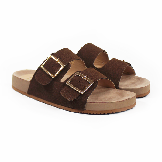 Sandalias de Piso Doble Hebilla Moka Gamuza de Dama TACZA