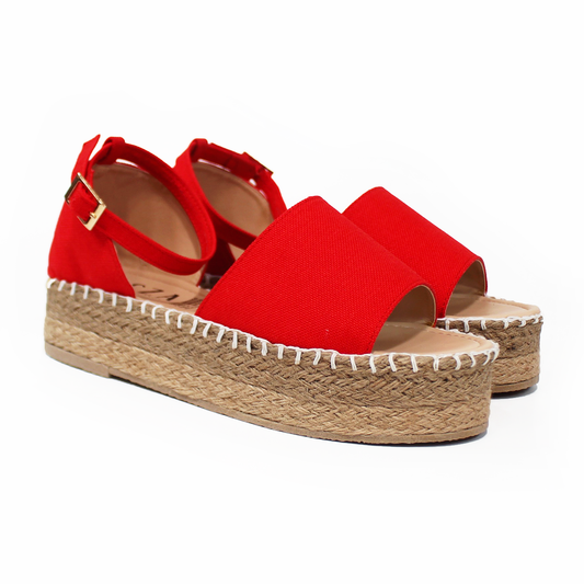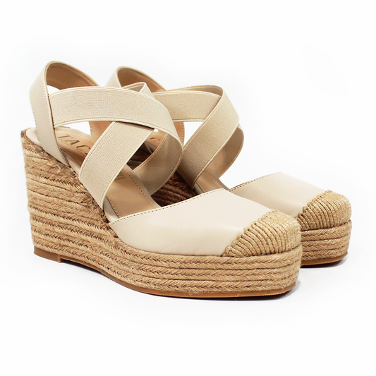 Alpargata de Plataforma Cuña Nude con Elásticos TACZA