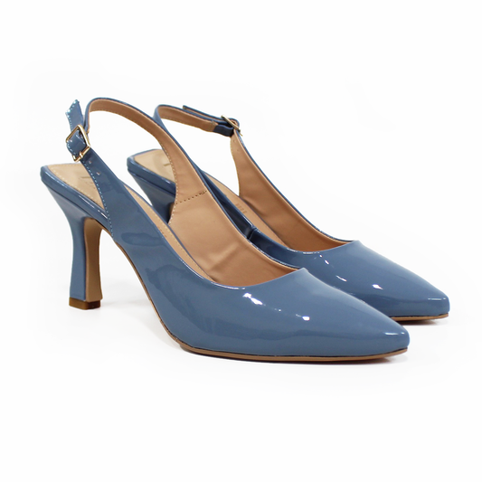 Zapatilla Slingback Puntal con tacón campana Destalonada Azul Charol de Dama TACZA