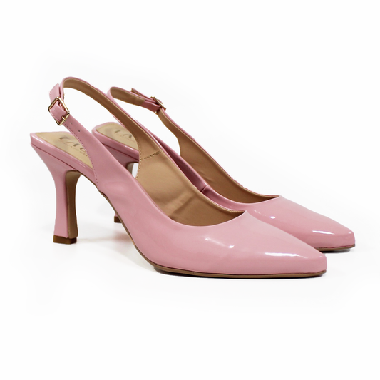 Zapatilla Slingback Puntal con tacón campana Destalonada Rosa Charol de Dama TACZA