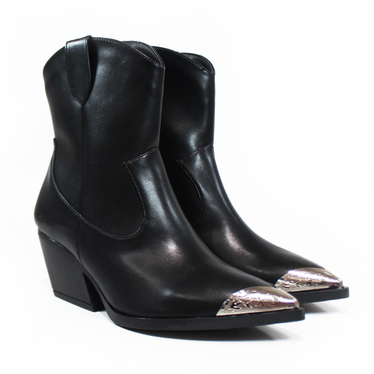 Botín Vaquera con Punta Metálica Negro Semipiel de Dama SENTIES