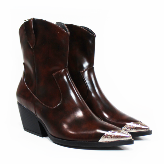 Botín Vaquera con Punta Metálica Marron Brocholeado de Dama SENTIES