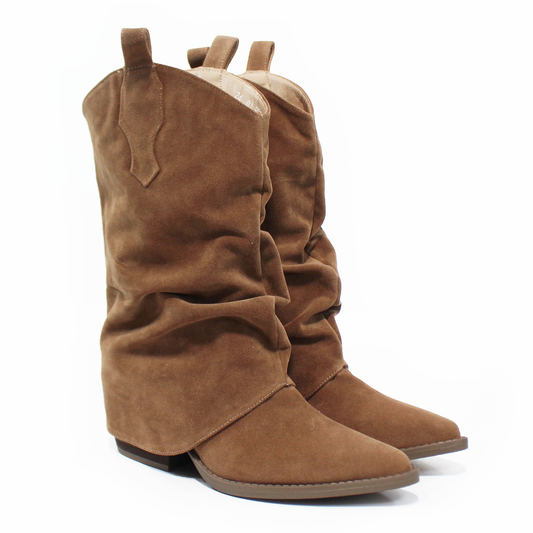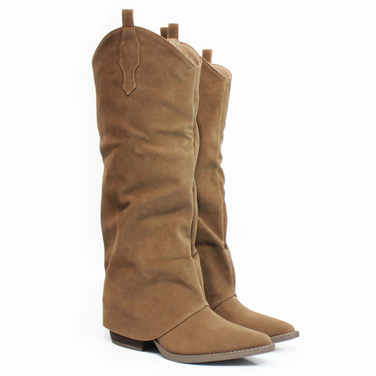 Bota Vaquera Arena Gamuza Tubo Medio con Capa de Dama TACZA