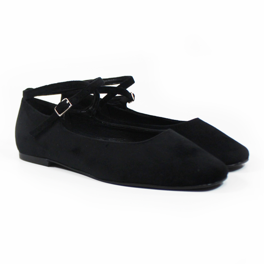 Zapatilla Puntal Negro Ante con Tira Cruzada en Empeine LADY PAULINA