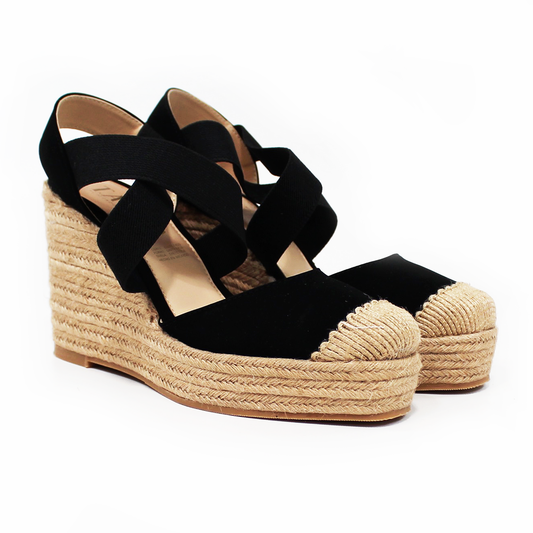 Alpargata de Plataforma Cuña Negra con Elásticos TACZA