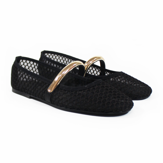 Flat de Mesh Negro con Detalle Dorado de Dama SENTIES