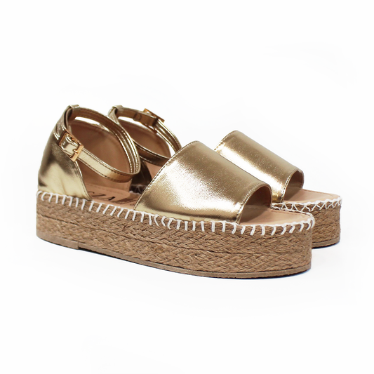 Sandalia Confort de Piel Dorada con Pulsera de Dama SUAVE CAMINAR