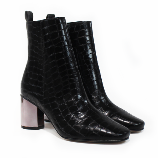 Botín de Vestir Negro Croco Tacón Redondo Metálico TACZA