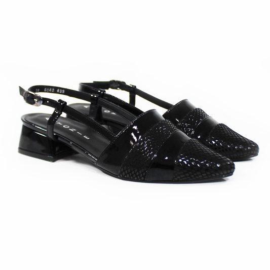 Zapatilla Puntal Slingback de Piel Negro Charol con Croco de Dama ANTONIE