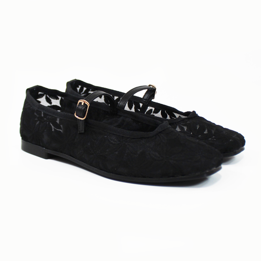 Flat Mary Jane de Encaje Negro de Dama