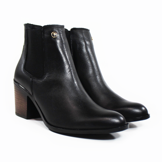 Botín Chelsea Negro de Piel con Tacón de Dama VERDE TABACO