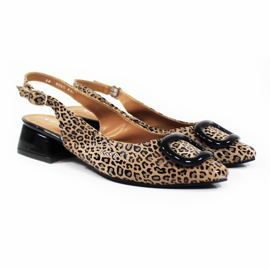 Zapatilla Puntal Slingback de Piel Leopard Print con Botón en Punta de Dama ANTONIE