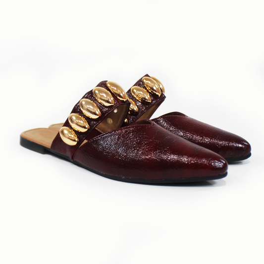 Mule Vino de piso con tira de Botones Dorados de Dama