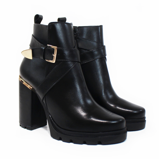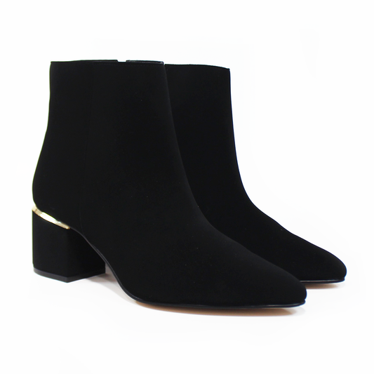 Botín de Vestir Negro Ante con Detalle Dorado en Tacón TACZA