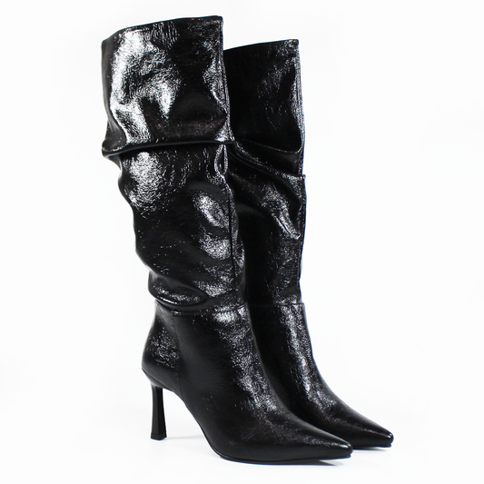 Bota Alta NOMADAS Negro con Tubo Plisado de Dama