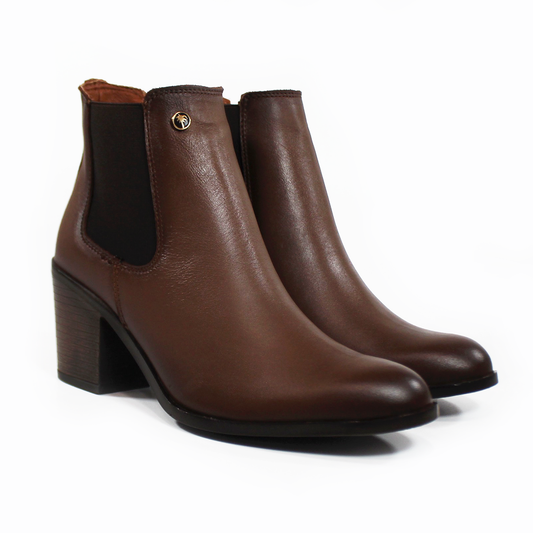 Botín Chelsea Café de Piel con Tacón de Dama VERDE TABACO