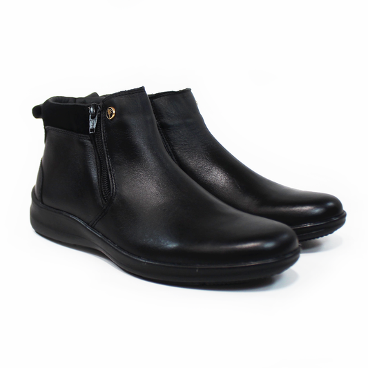Botin de Confort Negro de Piel con Doble Cierre de Dama VERDE TABACO