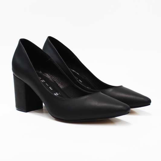 Zapatilla de Piel Tacón Grueso Negro de Dama ANTONIE