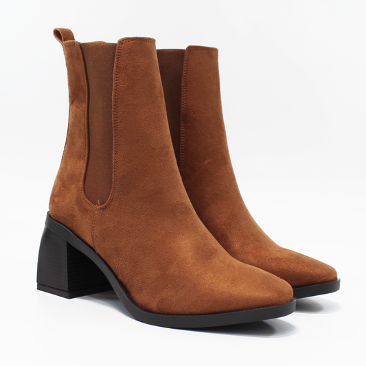 Botín Casual de Tacón color Tan con elástico y cierre de Dama SUAVE CAMINAR