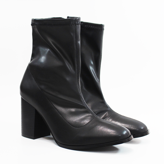 Botin Tubo Elástico Vinipiel Negro Tacon Ancho de Dama TACZA