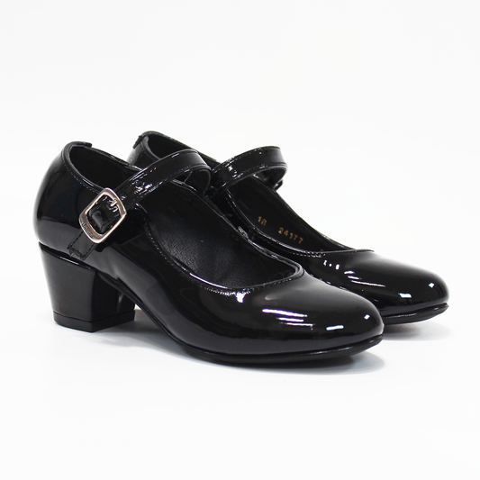 Mary Jane de Niña Negro Charol con Mini Tacón JAKUNA