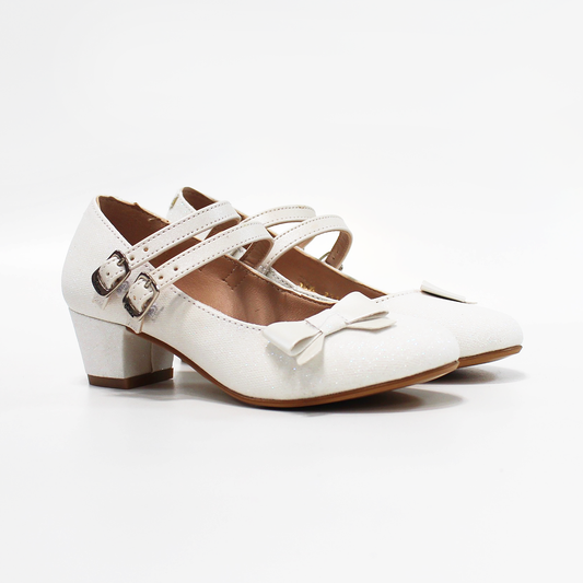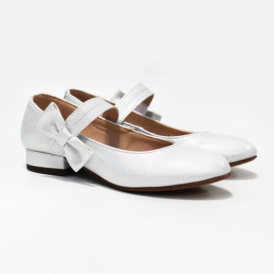 Zapatilla de Brillos Blanco Plata para Niña con Pulsera y Moño lateral JAKUNA