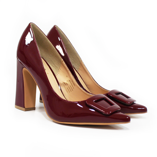 Zapatilla Puntal Vino Charol con Botón Cuadrado de Dama DVA