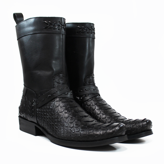 Bota Vaquera Negra de Piel con Textura Piton INMODA de Caballero INMODA