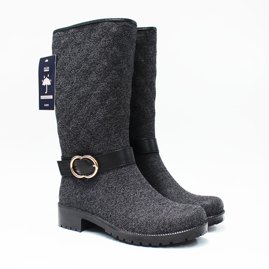 Bota de Lluvia Textil Negro con Cinto de Dama ULAN