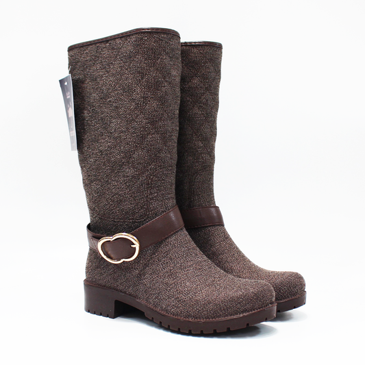 Bota de Lluvia Textil Café con Cinto de Dama ULAN