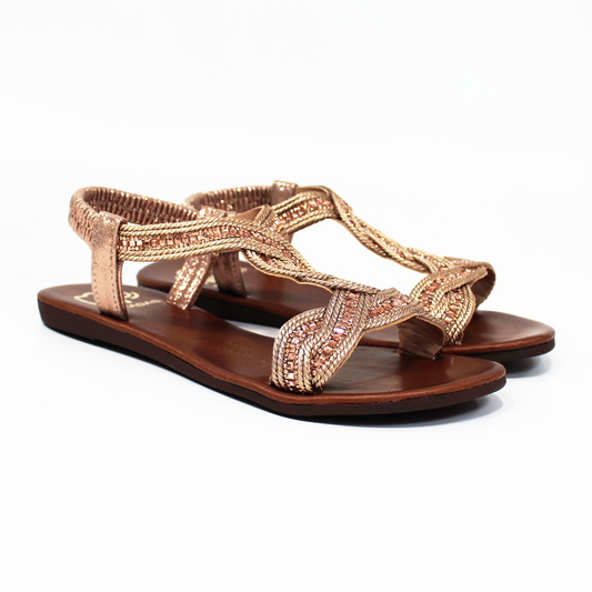 Sandalia NOMADAS de piso con Pedrería y Elástico color Bronce de Dama