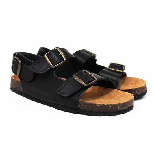 Sandalia NOMADAS Negra doble Hebilla con Pulsera Talón y suela de Corcho de Caballero