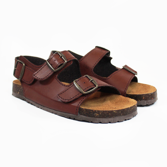 Sandalia NOMADAS Café doble Hebilla con Pulsera Talón y suela de Corcho de Caballero