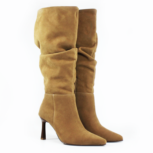 Bota Alta NOMADAS Camel con Tubo Plisado de Dama