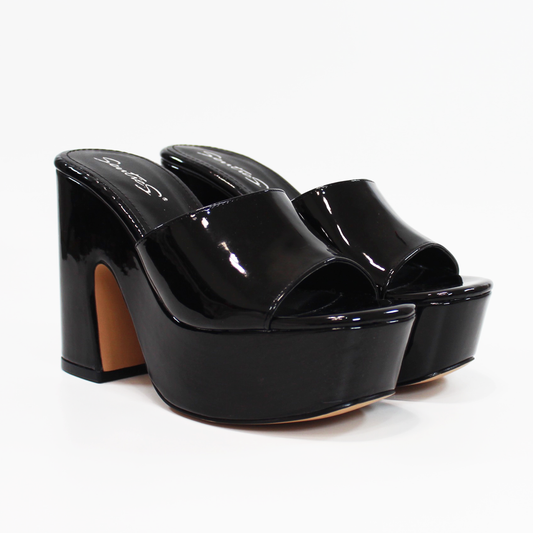 Sandalia de Plataforma Negro Brilloso de Dama TACZA