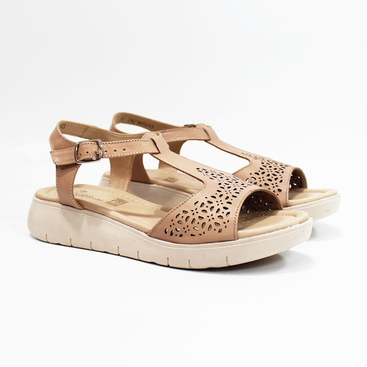 Sandalia Confort de Piel Perforado con Hebilla Maquillaje de Dama SUAVE CAMINAR