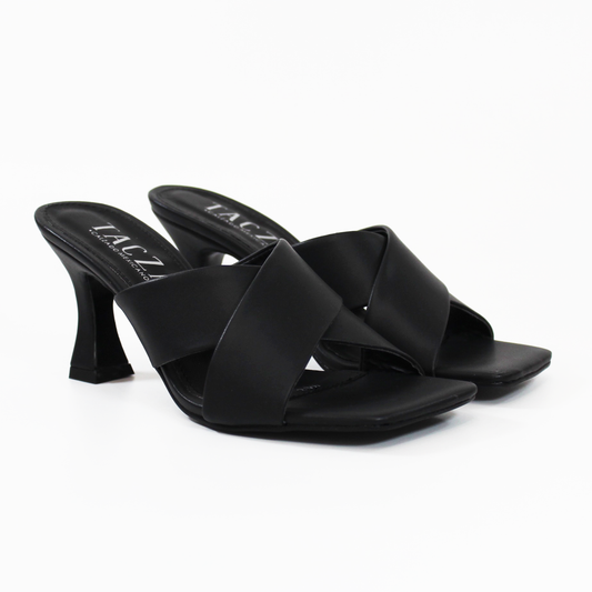 Sandalia de Tacón con Cruzado en talón Negro de Dama TACZA