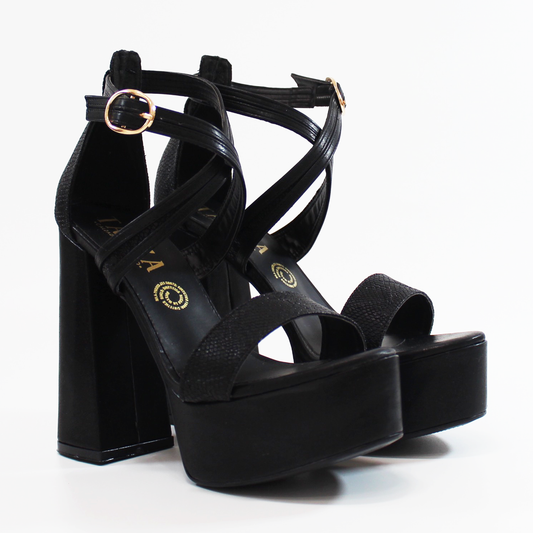 Sandalia Plataforma Negro Cruzado de Dama TACZA