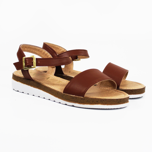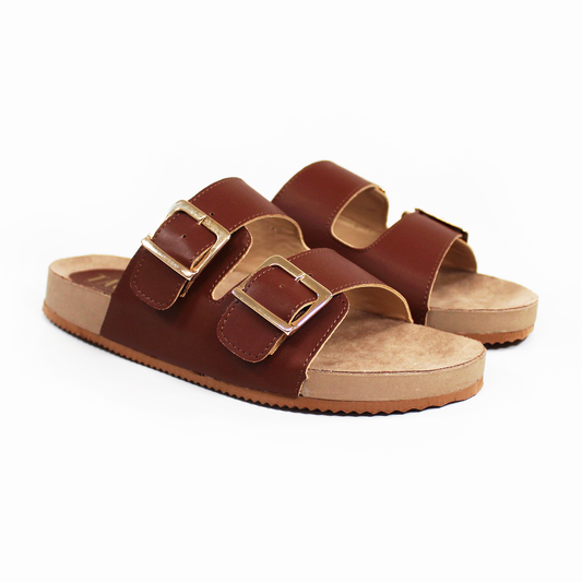 Sandalias de Piso Doble Hebilla Café de Dama TACZA