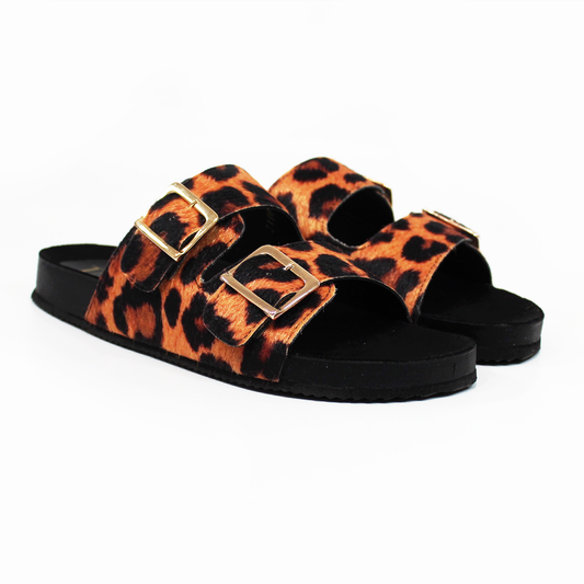 Sandalias de Piso Doble Hebilla Animal Print de Dama TACZA