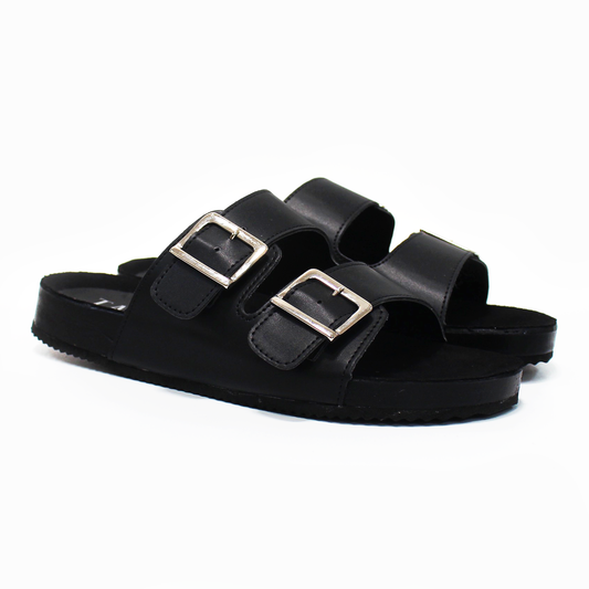 Sandalias de Piso Doble Hebilla Negra de Dama TACZA