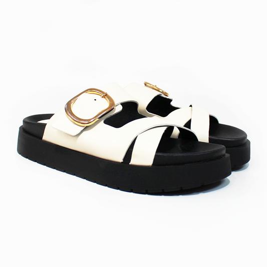 Sandalia Plataforma NOMADAS Late con suela Negra y Detalle con Hebilla de Dama