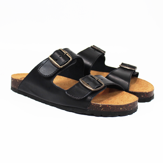 Sandalia NOMADAS Negra doble Hebilla suela de Corcho de Caballero