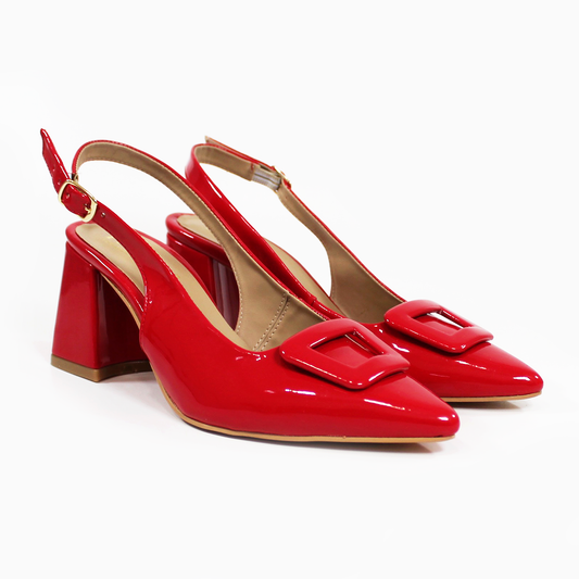 Zapatilla Puntal Destalonada con Botón Cuadrado Rojo Charol TACZA