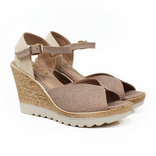 Alpargata Boca de Pez con Plataforma Cuña y Pulsera color Natural de Dama TACZA