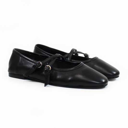 Flat Ballerina Clásica Negro con Pulseras Cruzadas en empeine de Dama TACZA