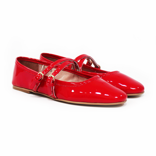 Flat Ballerina Clásica Rojo Charol con Pulseras Cruzadas en empeine de Dama TACZA
